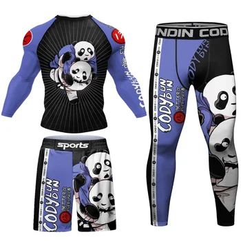 Customized Men's Jiu Jitsu MMA Compression Rashguard Set-Spandex/Nylon UPF50+ Anti-Bacterial Quick Dry
